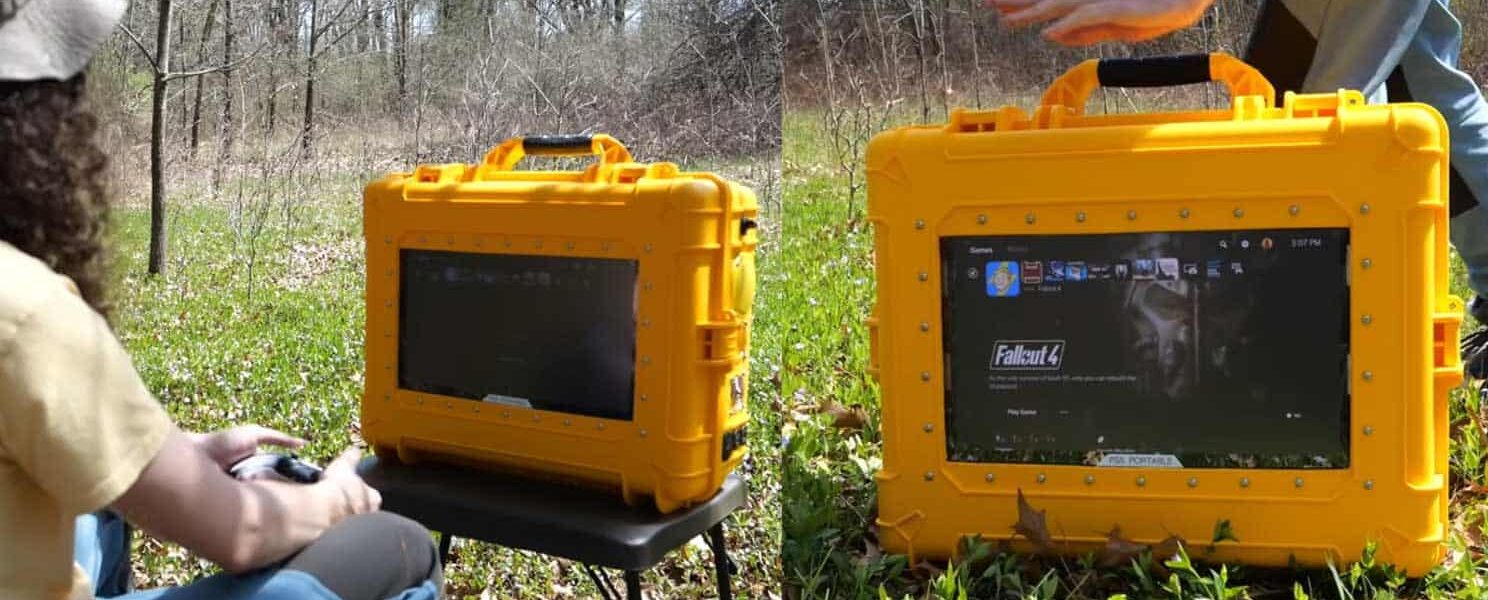 O YouTuber QuietNerd desmontou um PS5 e o colocou num hard case Pelican daqueles à prova de balas. Ele adaptou tela 4K de 17 polegadas, alto-falantes embutidos, quatro ventoinhas e uma bateria automotiva para pra rodar 5 a 8 horas.